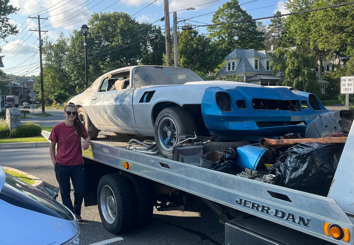 With some help from her dad, Gwyn started restoring the car. The first step was replacing the quarter panels and tail panel